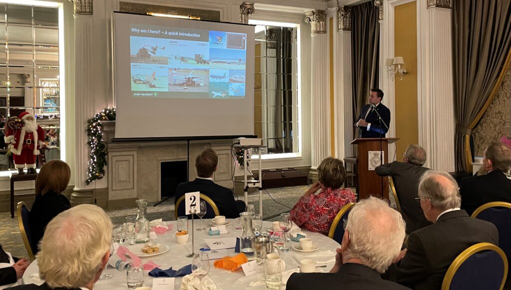 We then enjoyed hearing from Neil Cloughley, CEO of Faradair Aerospace Ltd.  Neil, winner of the “Sir Michael Marshall Award for Sustainability in Aviation 2021” award, shared with us his thoughts on why the current regional aviation transport model needs to change, how unmanned aircraft are likely to have a key role to play here, and how the UK needs to be more forward looking in its financing of innovation funding. Exciting, challenging, perhaps controversial, but totally fascinating!