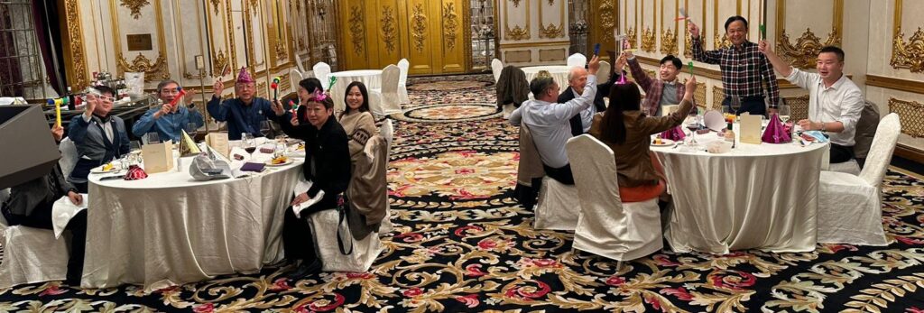 On Monday 12 December, members of the Hong Kong Squadron combined their Annual General Meeting with their Christmas party, held in Grand Ballroom 1 of the Alexandra Hotel, Hong Kong.  It was my pleasure to join them once again by zoom.  The business was brief, with the high spot being the induction of two new members: numbers 99 and 100! So, congratulations to the Hong Kong section on being 100 members strong now.
