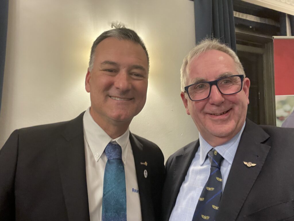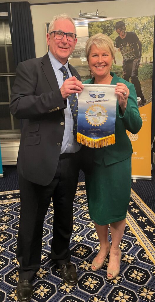 Amongst their busy programme, President Jennifer took part in three meetings with members of Rotary in London, including a celebration of International Women’s Day hosted by the Rotary Club of London on the theme of Unleashing the Potential of Young Women, a meeting in the House of Commons on Polio Eradication and a lecture at the Royal Overseas League on Global Challenges. I was fortunate to attend the first and third of these and to see just what an inspiring leader she is, as well as a genuinely kind, generous and fun Rotarian. And of course, this was my opportunity to put Flying Rotarians on the President’s map with the presentation of one of our banners.