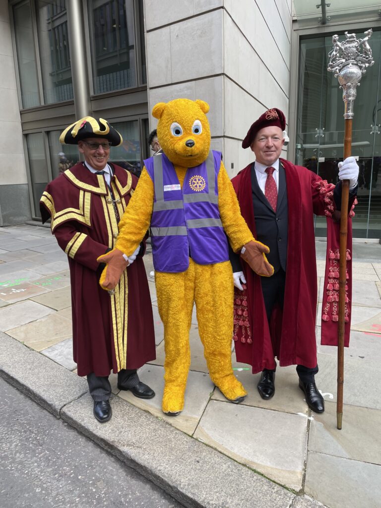 One of the joys of being a Rotarian in London is being able to participate in some of the finest British traditions. And there is nothing more traditional than the Lord Mayor of London’s show – one of the biggest and best parades of the year. It dates back to the early 13th century, when King John allowed the City of London (the small central area north of the River Thames which was historically the business district “the square mile”) to appoint its own Mayor, but insisted that each newly-elected Mayor should come to Westminster to swear loyalty to the Crown. The Mayor of London has now been making that journey for over 800 years, and around it has grown up the noisy, joyous procession that is the Lord Mayor’s Show.
