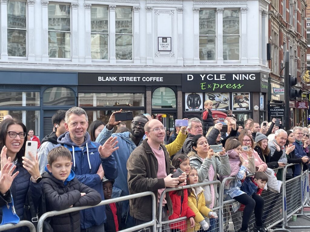 As we continued on, the crowds were growing. As we past St Paul’s the organ starting playing what might be our unofficial anthem “Those Magnificent Men in their Flying Machine.
